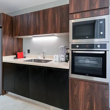 Kişisel kasa, kahve/çay makinesi, çalışma masası gibi olanaklara sahip odalarda ayrıca mikrodalga fırın, buzdolabı ile tam donanımlı mutfak vardır. Bazı odalarda teras bulunmaktadır. Bu daire misafirlere 1 yatak odası sunmaktadır. 1 banyo odası mevcuttur.